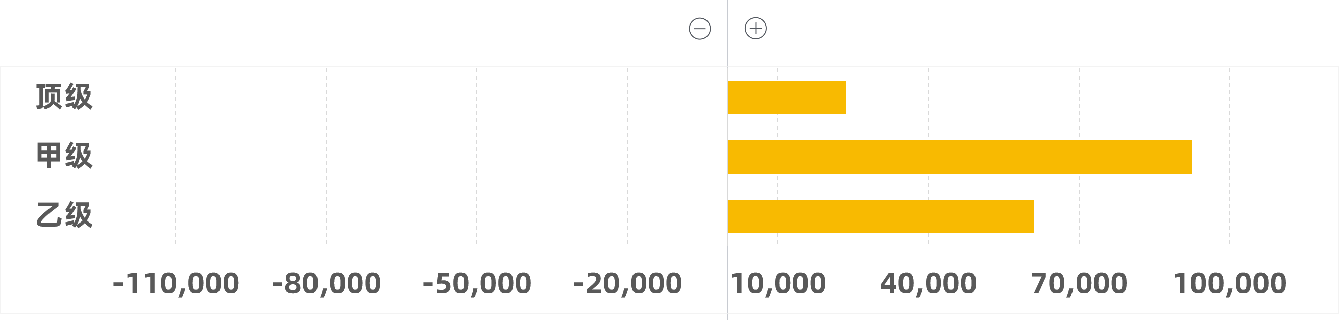 按樓宇等級成交面積(-/+)環比變化